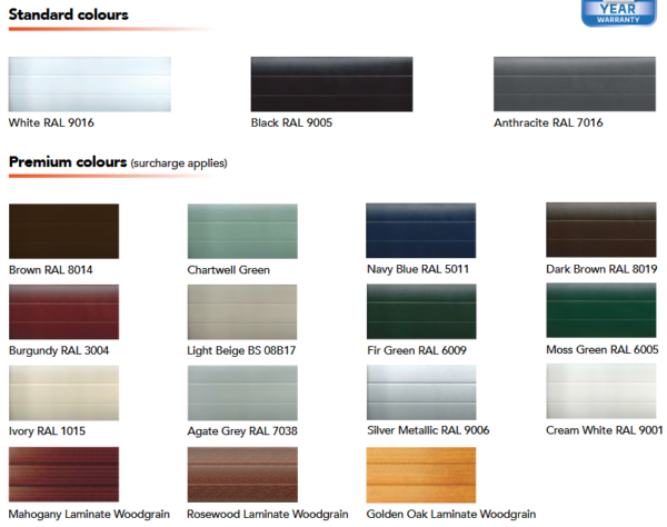 Colour OptionsRange of standard colours (Anthracite, White, Black, Brown, etc.)