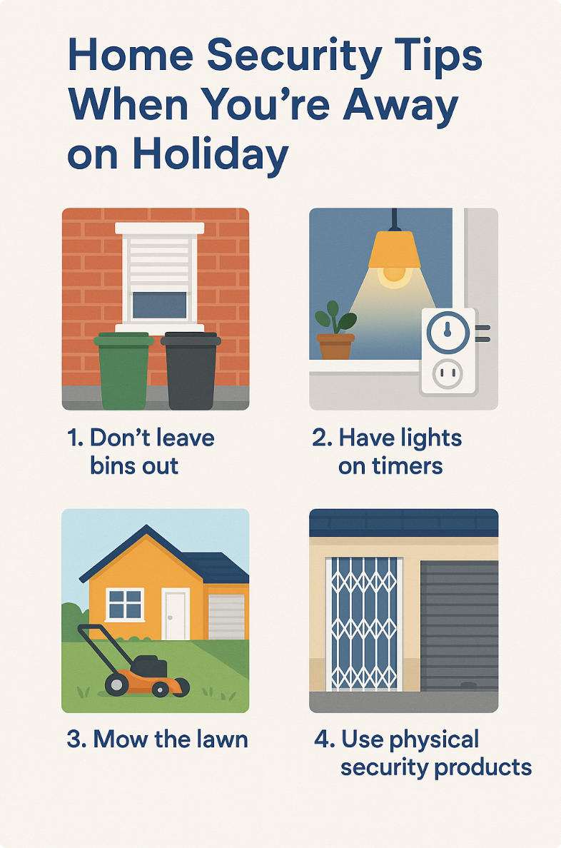 In this article, we’ll share simple holiday home security tips – from everyday actions like mowing the lawn to installing roller shutters and retractable security grilles for maximum protection.