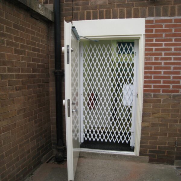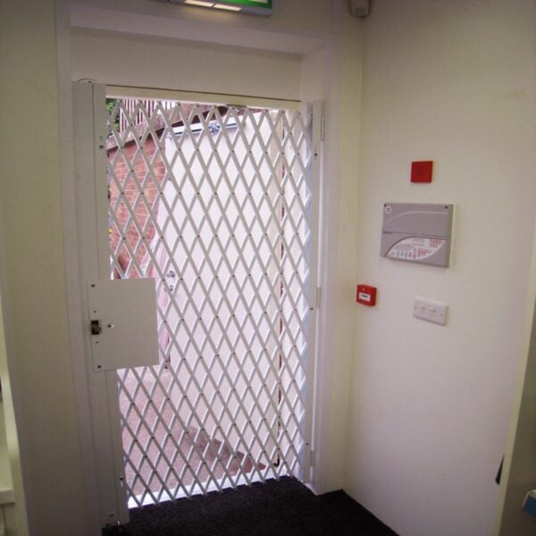 The CS80 Fire Exit Door Security Grille has been specifically designed to protect vulnerable fire exit doors from unauthorised access, without compromising emergency escape routes. Fire exit doors often feature a push bar mechanism that overrides locking from the inside, leaving them exposed to forced entry from the outside. The CS80 provides an effective security solution, ensuring both safety and compliance. It can also be used to restrict access when fire doors are left open for ventilation.