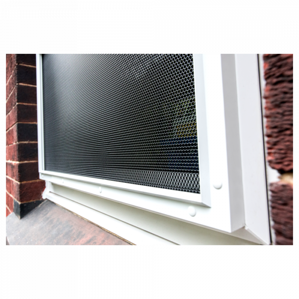 The High Security Perforated Window Guards feature a precision-engineered perforated metal mesh that allows approximately 60% visibility while maintaining strong resistance to impact and intrusion.